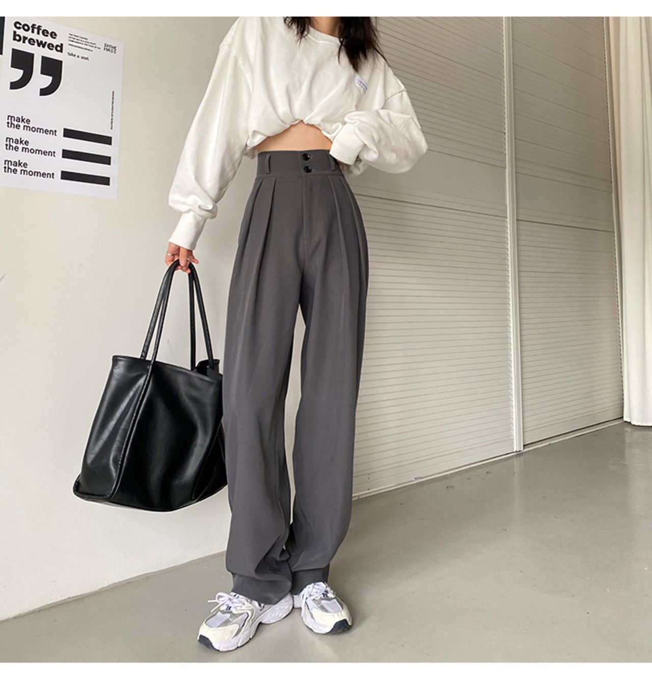 ハイウエストワイドレッグパンツです。