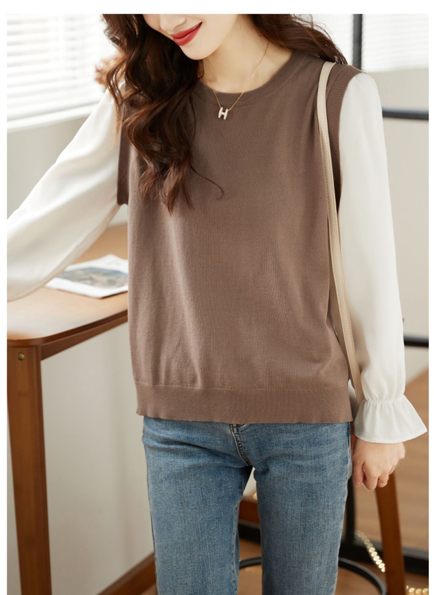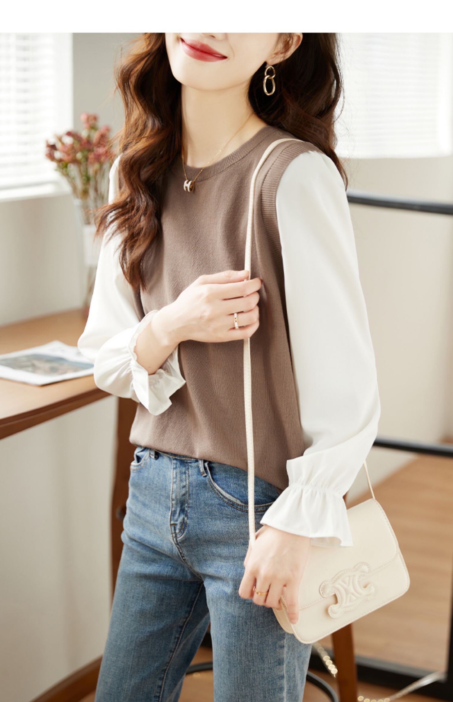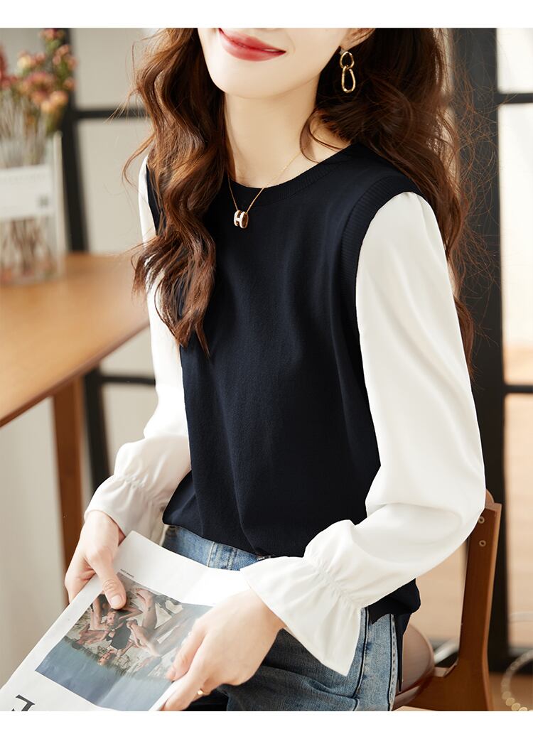 トップス ブラウス ニットソー ショート丈 長袖 ボリューム袖 Uネック ストレート 切り替えデザイン ドッキング ニット かわいい 大人可愛い きれいめ シンプル 大人 上品 おしゃれ お洒落 大人女子 こなれ感 ラフ ガーリー モード系 エレガント モダン S M L XL 黒 ブラック 茶色 ブラウン 大人カラー バイカラー モノトーン 無地 春 秋 レディース ママ オフィス ビジネス OL 通勤 デート お出かけ イベント 着回し 普段使い 韓国系 オルチャン コーデ 楽ちん モテ 定番