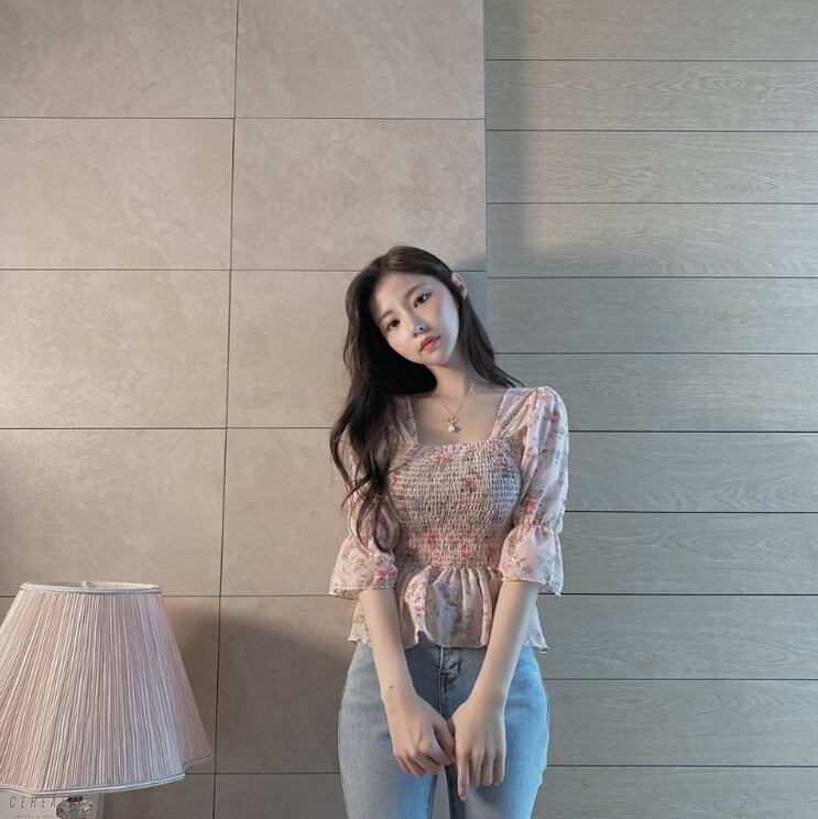 トップス ブラウス シャツ シフォン パフスリーブ プルオーバー リボン フラワー スクエアネック トランペットスリーブ ハイウエスト 夏 スウィート 半袖 ライトグリーン ライトピンク ショート丈 ショート S M L 袖あり ボリューム袖 マーメイド フリル ウエストマーク かわいい 大人可愛い 大人 おしゃれ お洒落 レトロ 大人女子 ラブリー キュート ガーリー セクシー エレガント 柄 花柄 小花柄 10代 20代 レディース 女性用 オフィス OL デート ファッション コーデ モテ 色展開