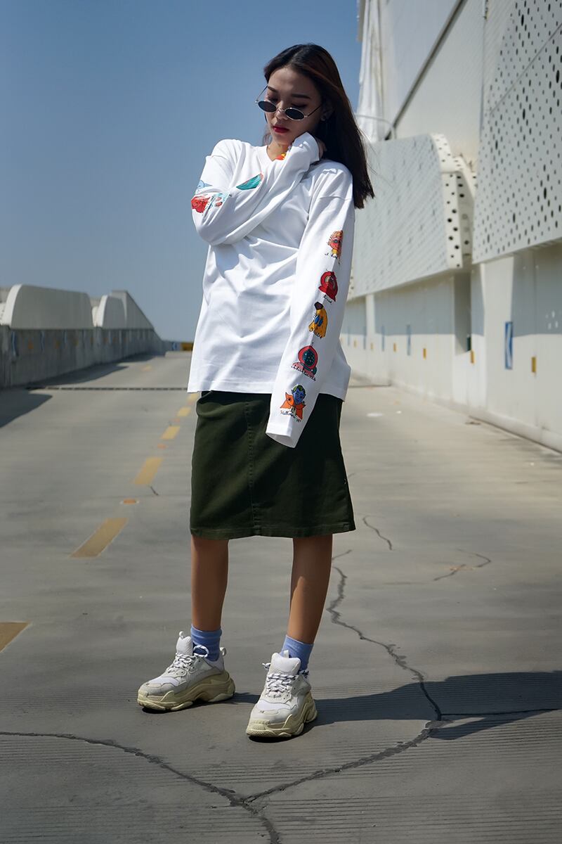ポップでキュートなキャラクターが袖にプリントされた、ロングスリーブカットソーです。