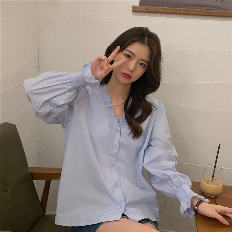 トップス シャツ ブラウス ミディアム丈 ミドル丈 袖あり 長袖 ボリューム袖 ドルマンスリーブ Vネック フリル 可愛い かわいい 綺麗め きれいめ シンプル カジュアル 大人 上品 おしゃれ お洒落 レトロ こなれ感 ラブリー キュート ガーリー フェミニン 無地 春 秋 10代 20代 レディース 女性用 学生 通学 デート お出かけ 女子会 休日 ショッピング 着回し 普段使い 韓国 韓国系 オルチャン ファッション スタイル モテ M L XL 2XL 3XL 4XL 白 ホワイト 青 ブルー