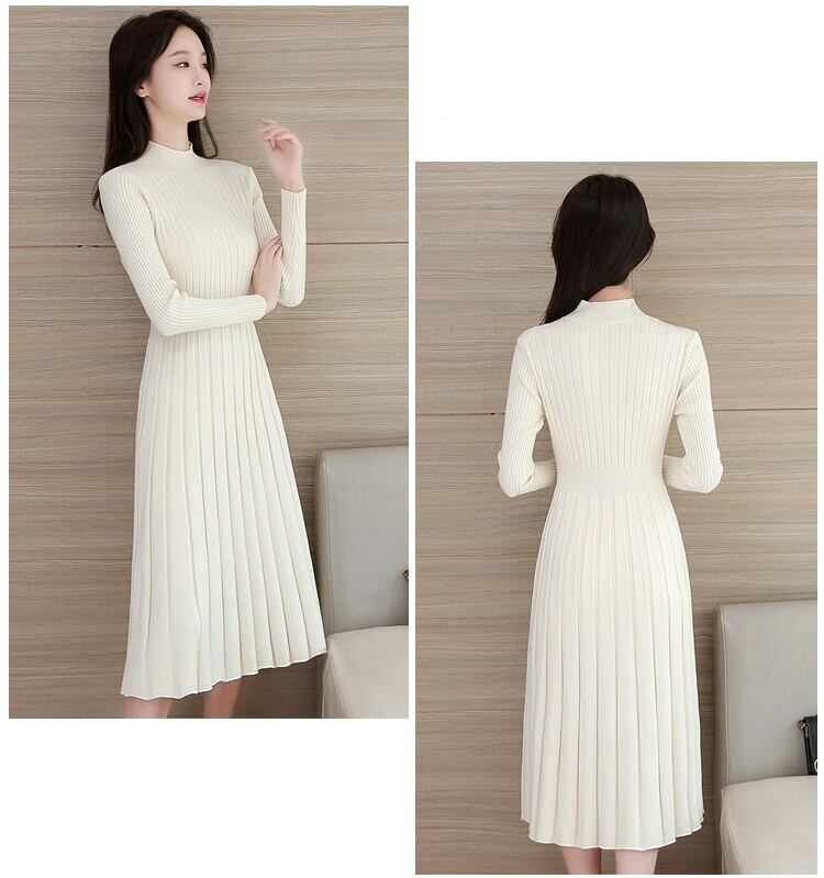 ニットワンピース フレアワンピース ワンピース ロングスカート プルオーバー ハイネック ハイウエスト 通勤 冬 秋 無地 ハーフハイカラー オフホワイト 白 ブラック 黒 レッド 赤 長袖 フレア S M L XL 2XL 膝下 ロング ロング丈 袖あり タイト 細身 かわいい 大人可愛い きれいめ シンプル 大人 上品 おしゃれ お洒落 大人女子 ラブリー キュート ガーリー エレガント モダン 10代 20代 レディース 女性用 オフィス OL デート パーティー ファッション コーデ スタイル