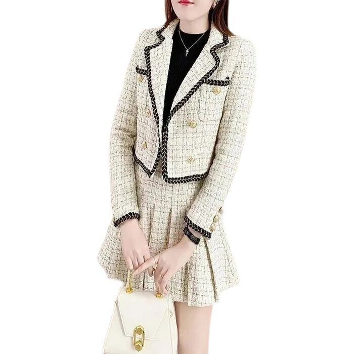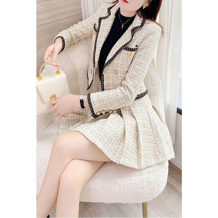 セットアップ ジャケット ミニプリーツスカート ミニ 膝上丈 長袖 襟付き フレア Aライン 前開き ボタン 上下セット 2点セット ツーピース 大人可愛い きれいめ 大人 上品 おしゃれ お洒落 レトロ 大人女子 モード系 セクシー エレガント モダン フォーマル S M L XL 2XL 3XL ホワイト 大人カラー チェック 秋 冬 卒業式 卒園式 レディース ママ OL 通勤 お出かけ パーティー イベント 着回し 普段使い 重ね着 スタイル 美脚 脚長 定番