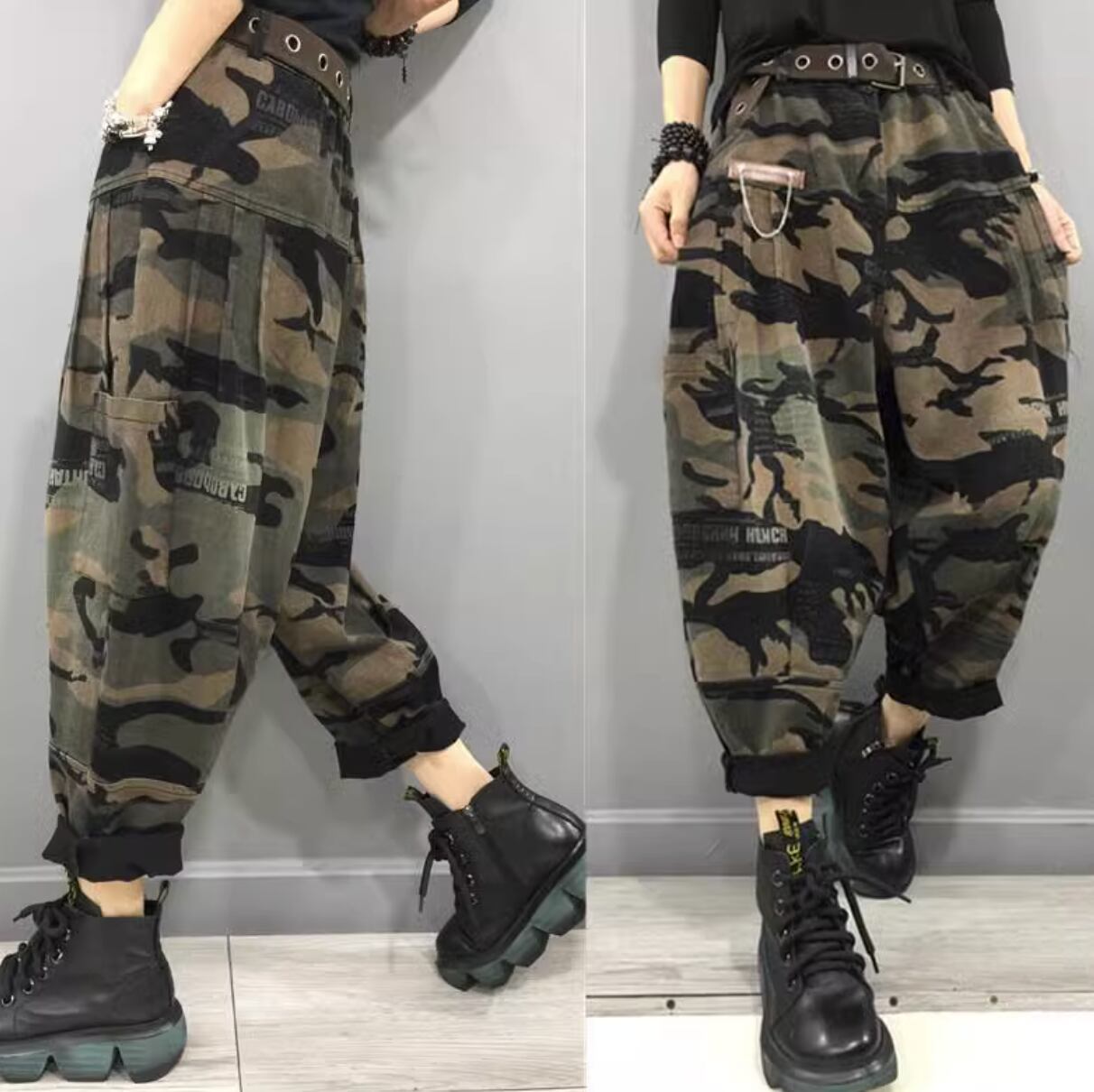ゆるっと楽ちんな迷彩柄のバギーパンツです。