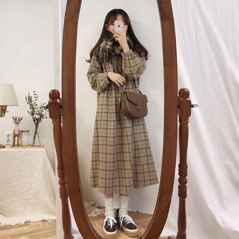 ワンピース シャツワンピース 膝下 ミモレ ミモレ丈 襟付き スタンダードカラー レギュラーカラー ポロカラー 長袖 Aライン ワイド ボタン キュート かわいい ガーリー 大人可愛い 大人女子 フェミニン きれいめ エレガント 上品 清潔感 シンプル カジュアル こなれ感 ラフ ルーズ レトロ プレッピー クラシカル おしゃれ お洒落 無地 チェック柄 格子柄 春 秋 冬 レディース 女性用 お出かけ デート 女子会 休日 普段使い デイリー 楽ちん 体系カバー ゆったり ゆる 2色展開 カーキ レッド