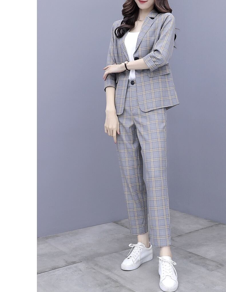 アウター ボトムス セットアップ ジャケット ブレザー ブレザージャケット テーラードジャケット パンツ ズボン ストレートパンツ クロップドパンツ スーツ アンクル丈 9分丈 Vネック 襟付き ノッチラペル 袖あり 7分袖 七分袖 ハイウエスト 上下セット 2点セット ツーピース 大人可愛い 大人っぽい 大人女子 きれいめ エレガント 上品 清潔感 シンプル かっこいい クール マニッシュ ボーイッシュ カジュアル 抜け感 おしゃれ お洒落 チェック柄 格子柄 春 夏 秋 レディース 女性用 2色展開