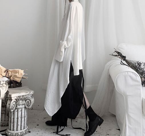 ドロップショルダーがこなれ感を演出する、おしゃれなロングシャツが登場しました。シャツカラーとボタンがアクセントとなり、襟付きできれいめに着こなせます。ワイドシルエットで動きやすく、ラフに着こなしても美ラインをキープ。シンプルなデザインながら、トレンド感のあるモードな雰囲気が魅力です。
