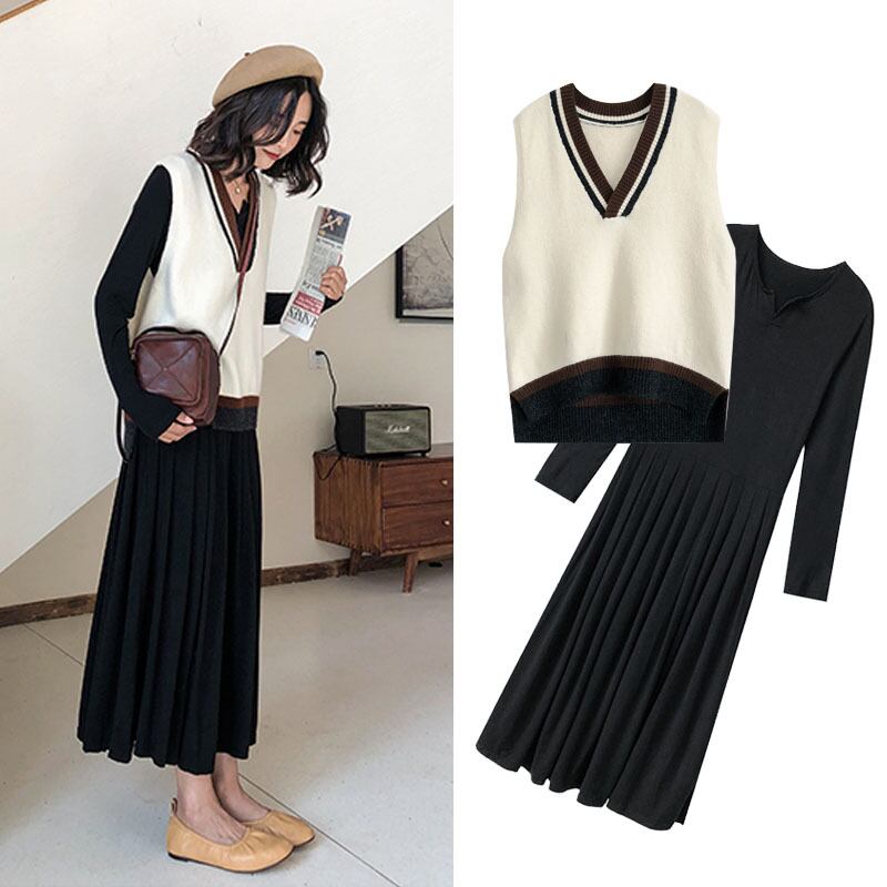 トップス ワンピース セットアップ セーター 膝下 ミモレ丈 ロング丈 袖あり ノースリーブ 長袖 Vネック Aライン プリーツ 2点セット かわいい 大人可愛い きれいめ シンプル カジュアル 大人 上品 お洒落 レトロ 大人可愛い 大人女子 こなれ感 ガーリー 抜け感 無地 春 秋 冬 母の日 クリスマス バレンタイン 10代 20代 30代 40代 50代 レディース ママ 通勤 学生 通学 デート お出かけ 公園デビュー 女子会 休日 アウトドア 旅行 着回し M L XL 2XL ブラック