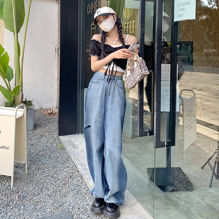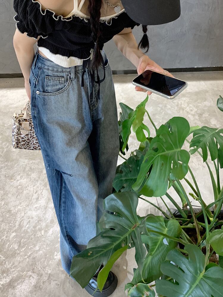 ボトムス Gパン デニムパンツ カジュアルパンツ レギュラー丈 ストレート ワイドレッグ ハイウエスト ウエストゴム 伸縮性 デニム ブルーデニム シンプル カジュアル おしゃれ お洒落 格好いい かっこいい こなれ感 ラフ マニッシュ ボーイッシュ 無地 春 夏 秋 10代 20代 30代 レディース 女性用 ママ オフィス ビジネス OL 通勤 学生 通学 お出かけ 公園 休日 着回し 普段使い コーデ 楽ちん サイズ展開 S M L ゆる ゆったり 青 ブルー ライトブルー