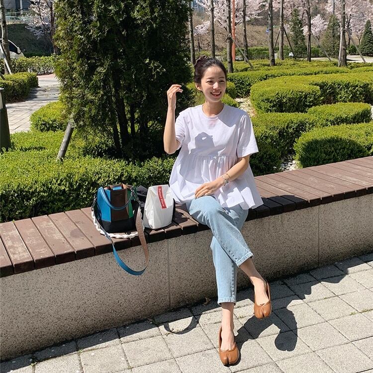 トップス Tシャツ カットソー 白トップス ショート ショート丈 半袖 Uネック ラウンドネック 切り替えデザイン ギャザー かわいい 大人可愛い きれいめ シンプル カジュアル 大人 上品 おしゃれ お洒落 大人女子 こなれ感 ラフ キュート ガーリー モード系 エレガント モダン 抜け感 S M L XL ゆったり ゆる 白 ホワイト 黒 ブラック 大人カラー モノトーン 無地 春 夏 レディース ママ デート お出かけ アウトドア リゾート 旅行 海 プール 着回し 普段使い コーデ モテ 定番