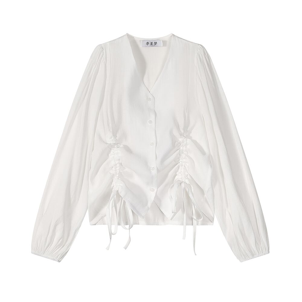 トップス シャツ ブラウス 袖あり 長袖 Vネック 襟なし リボン 前開き ボタン 薄手 かわいい 大人可愛い きれいめ カジュアル 大人 上品 おしゃれ お洒落 レトロ 大人女子 こなれ感 ラフ 個性的 クール モード系 モダン 抜け感 スポーツ ストリート 無地 春 秋 20代 30代 40代 50代 60代 レディース 女性用 OL 学生 お出かけ 休日 普段使い 楽ちん ワンサイズ 白 ホワイト 黒 ブラック 茶色 ブラウン ダークブラウン