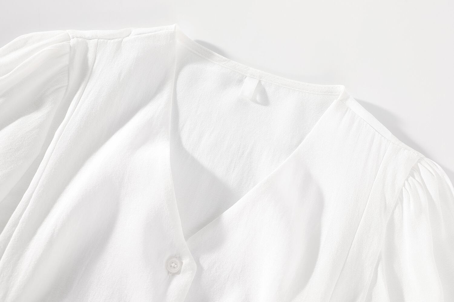 華奢なリボンとVネックが品よく見せてくれる、大人可愛い一着です。