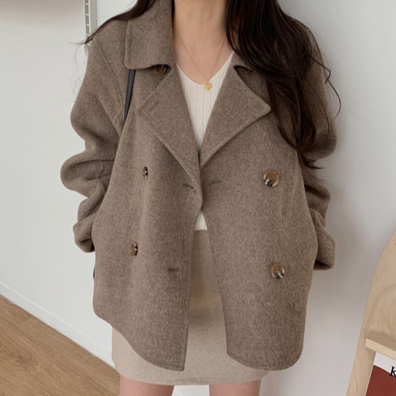 アウター コート ジャケット ピーコート エレガント ダブルブレストボタン 厚手 上着 袖あり 長袖 襟付き ストレート 前開き かわいい 大人可愛い きれいめ カジュアル 大人 上品 おしゃれ お洒落 かっこいい レトロ 大人女子 こなれ感 クール モード系 エレガント フォーマル 春 秋 10代 20代 30代 40代 50代 オフィス ビジネス OL 学生 イベント お出かけ 仕事 フリーサイズ ベージュ ブラウン