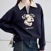 トップス プルオーバー 服 トレーナー ポロシャツ 袖あり 長袖 かわいい シンプル カジュアル おしゃれ お洒落 レトロ 大人可愛い 大人女子 こなれ感 ラフ ルーズ 主役級 フェミニン 秋 10代 20代 レディース 女性用 学生 通学 お出かけ 女子会 着回し 普段使い 重ね着 ファッション コーデ スタイル 楽ちん モテ 体系カバー S M L ネイビー 紺 カジュアル可愛い プリント アメリカン セーター 女性 ボーイッシュ ポロ襟 学生デート 可愛