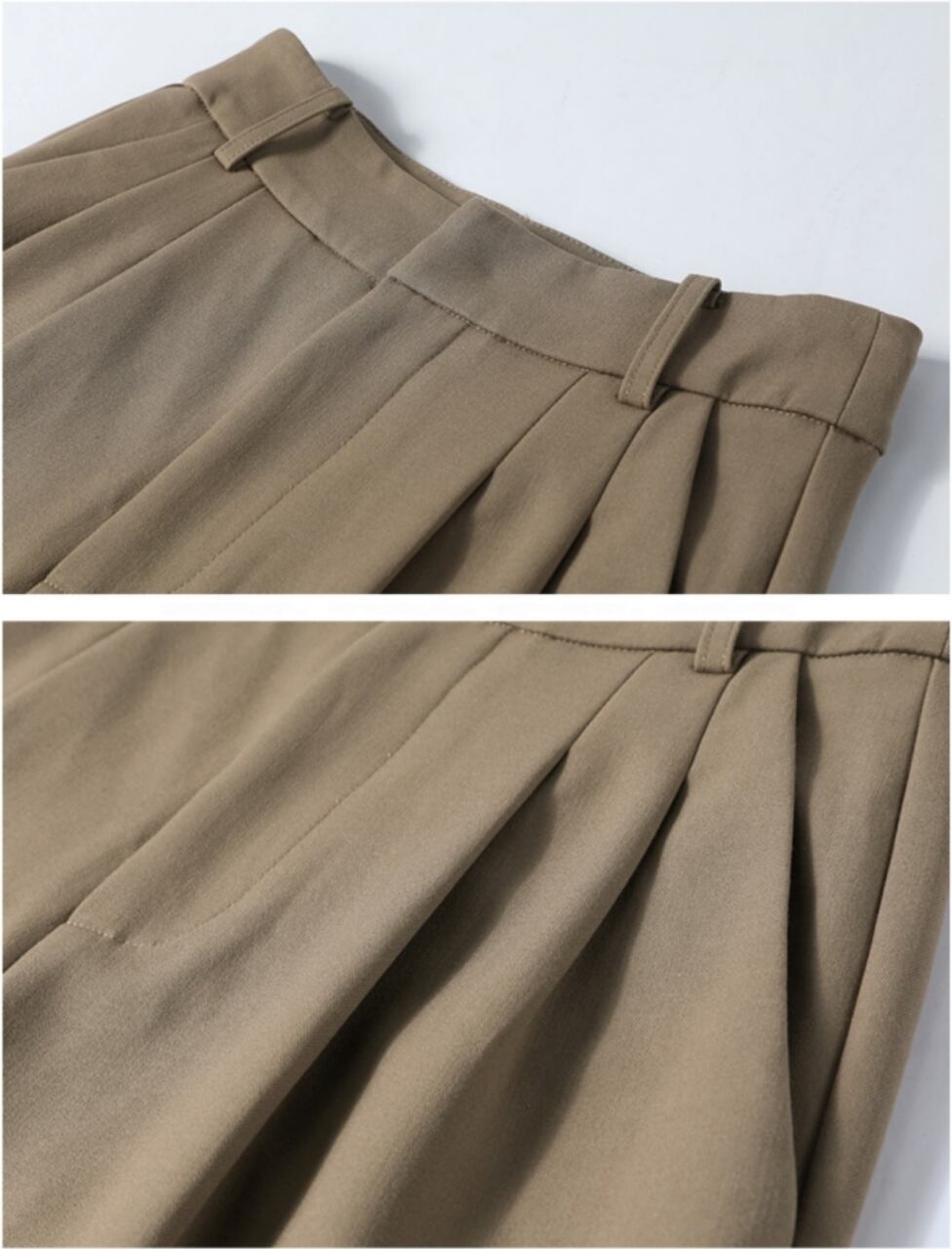 ジャケットはオーバーサイズでカジュアルな印象。パンツはゆったりとしたハイウエストでスタイルアップに期待できます。袖をロールアップしたときに覗く、上品なストライプ柄もポイントです。セットでの着用はもちろん、単体でも着られる便利なアイテムです。ぜひ、この万能なセットを試してみてはいかがでしょうか。