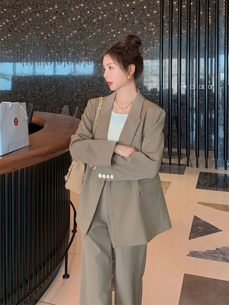 セットアップ ジャケット ブレザー ブレザージャケット テーラードジャケット パンツ ズボン ストレートパンツ Vネック 襟付き 長袖 オーバーサイズ ボタン 前開き ポケット ダブルブレスト キュート かわいい ラブリー 大人可愛い 大人女子 フェミニン きれいめ エレガント 上品 清潔感 シンプル ベーシック かっこいい クール メンズライク マニッシュ ボーイッシュ カジュアル こなれ感 ラフ プレッピー 抜け感 おしゃれ 華やか 無地 ストライプ 春 秋 レディース 女性用 ゆったり 2色展開