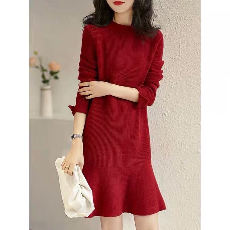 冬のおしゃれには、ニットワンピースが欠かせません。このワンピースは、フレアの広がりが可愛らしいデザインで、ウエスト部分はしぼってあり、細身のシルエットに。ラウンドネックと長袖で、女性らしさもしっかりキープしています。膝丈は大人っぽく、足元はブーツなどで合わせても◎。リブ素材で伸縮性があるため、動きやすく着心地も抜群です。カラーは2色で、お好きな色が必ず見つかります。きっとあなたのお気に入りが見つかるはず。この一枚であなたもきれいめな大人女子に。是非、お試しください!