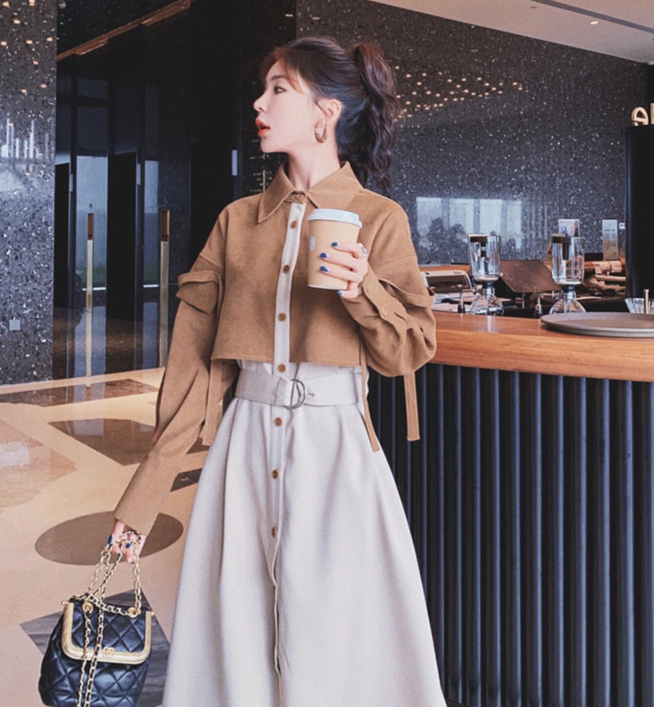 これ一枚で重ね着したようなオシャレコーデが完成するシャツワンピースです。