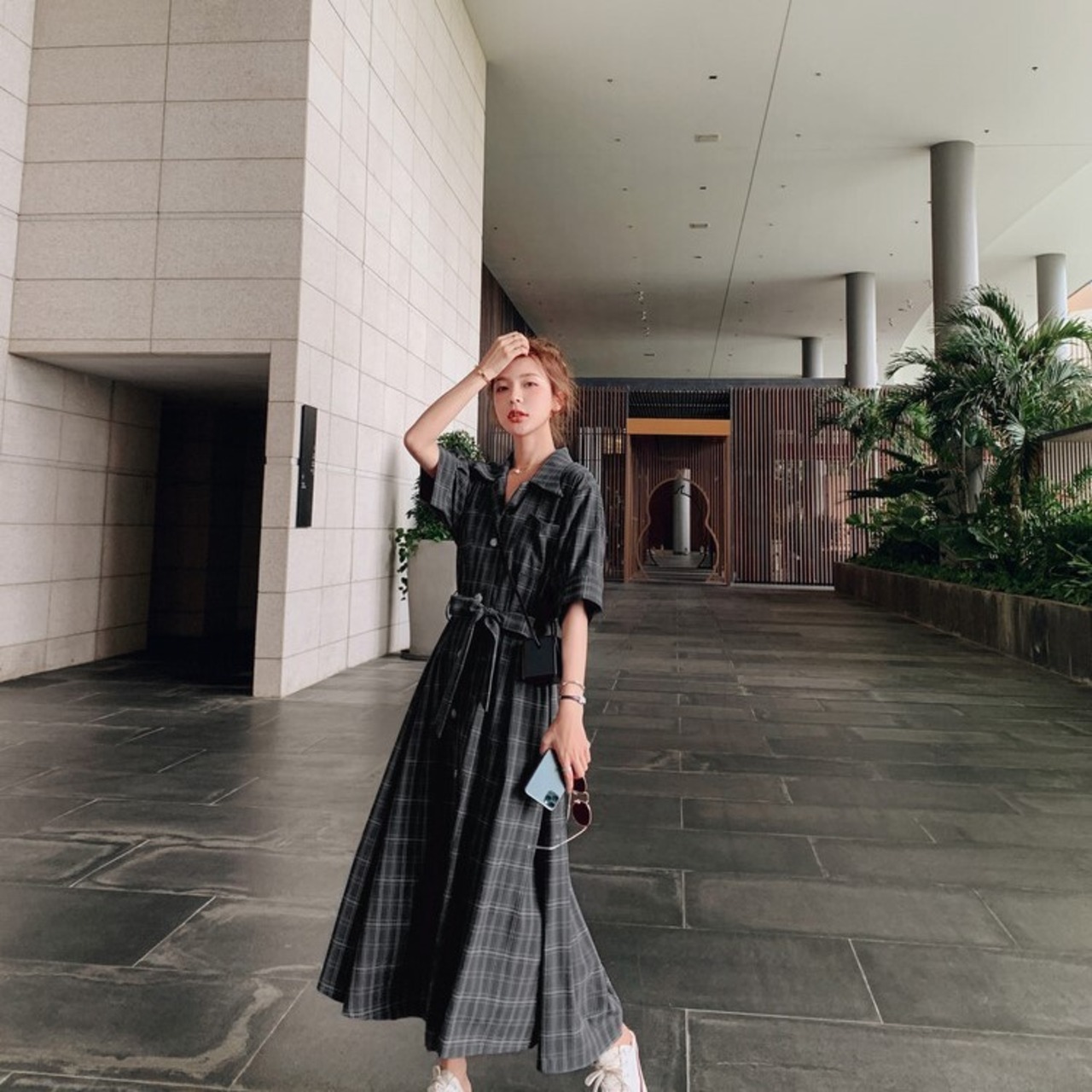 一枚で完成するおしゃれなコーデが叶う、シャツワンピースの登場です。チェック柄とフレアスカートの組み合わせが可愛らしく、シャツのVネックとウエストベルトでフェミニンな印象に仕上がっています。オフィスやデート、お出かけなど、様々なシーンで着回し可能なので、コーディネートの幅も広がります。袖ありでオンシーズンも対応し、長めの丈で体型カバーも◎。さらに、お手入れも簡単なので、忙しい現代女性にもピッタリです。