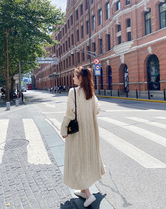 ホワイト、ブラックの2色展開のロングカーディガンです。定番カラーなので他のコーデとの相性もよく一着あると便利なアイテムで着回し力抜群です。さっと羽織れてリラックスタイムにも最適です。ケーブルニットが魅力的でカジュアルさとエレガントさをあわせもつデザインです。
