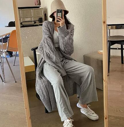 大人女子の落ち着いた色味、グレーのロングカーディガンです。定番カラーなので他のコーデとの相性もよく一着あると便利なアイテムで着回し力抜群です。さっと羽織れてリラックスタイムにも最適です。ケーブルニットが魅力的でカジュアルさとエレガントさをあわせもつデザインです。