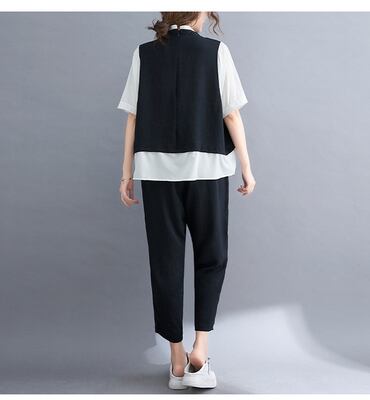 ノーサイドで使えるセットアップが登場しました!上着は重ね着風ブラウスのVネックが特徴的で、クロップドパンツとの相性抜群です。ポケット付きで腰回り楽ちんでありながら、アンクル丈でXL,2XLの2サイズ展開でスタイリッシュな印象に。重ね着風にもなるので、レイヤードスタイルも楽しめます。2色展開で、無地でシンプルなデザインなので、女性らしいコーディネートにもマニッシュなコーディネートにも、幅広く活躍してくれます。また、洗濯機でのお手入れも可能なので、忙しい日々を過ごす方にもオススメ。このセットアップで、おしゃれに快適に過ごしてみませんか。