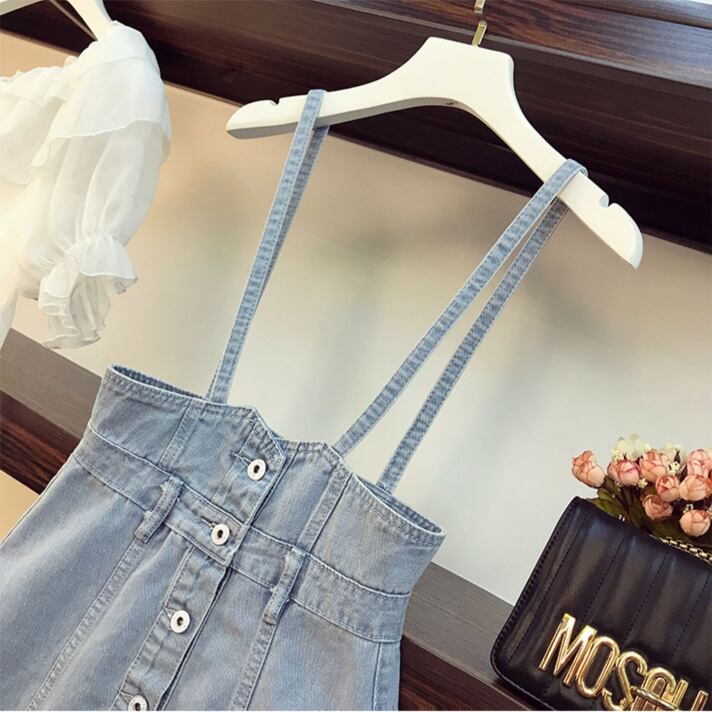2点セット トップス ワンピース ツーピース ドレス ストラップスカート シフォンシャツ フリル シフォン パフスリーブ デニムワンピース デニム プルオーバー 夏 ショートスカート 無地 花柄 通勤 ハイウエスト Aライン 半袖 サスペンダー 白トップス ホワイト 白 S M L XL スカート シャツ ブラウス ショート ショート丈 袖あり 上下セット かわいい 大人可愛い 大人 おしゃれ 大人女子 ラブリー キュート ガーリー 10代 20代 レディース オフィス OL デート ファッション モテ