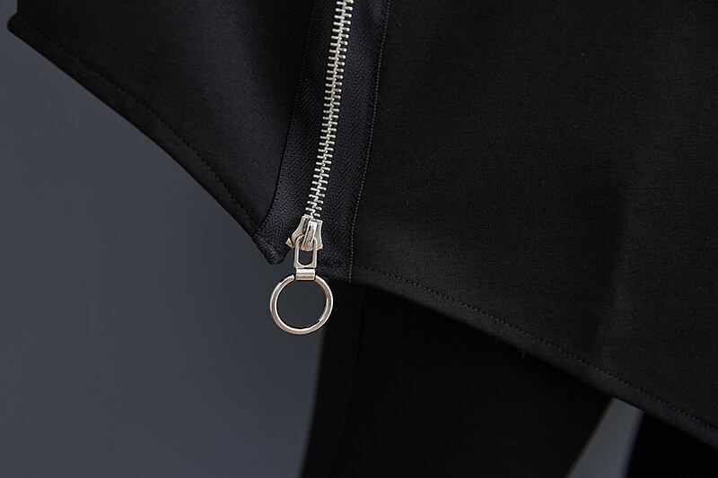 モード系のアシンメトリーチュニックです。全体的にゆったりとした着心地で体型カバーにもなる飾りファスナーがアクセントのアイテムです。