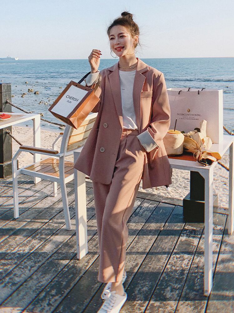 ボトムス パンツ セットアップ ジャケット ズボン 上着 スーツ 袖あり 長袖 襟付き 上下セット 2点セット かわいい 大人可愛い シンプル カジュアル 大人 上品 おしゃれ お洒落 かっこいい 大人女子 こなれ感 ラフ モダン 無地 春 秋 10代 20代 30代 レディース 女性用 オフィス ビジネス OL 通勤 学生 通学 デート お出かけ 休日 レストラン ショッピング 着回し 韓国 韓国系 オルチャン ファッション モテ トレンド 流行 サイズ S M L XL 色展開 ピンク ブラック