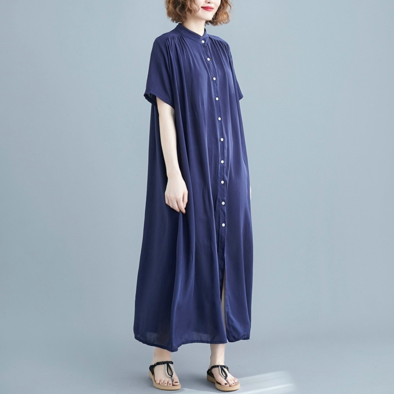 ワンピース ロングスカート シャツワンピース ロング ロング丈 袖あり 半袖 5分袖 五分袖 スタンドカラー フレア ワイド Aライン 前開き 可愛い かわいい きれいめ シンプル カジュアル 大人 上品 おしゃれ お洒落 レトロ 大人可愛い 大人女子 こなれ感 ラフ マニッシュ ガーリー クール 無地 春 夏 20代 30代 レディース 女性用 ママ 学生 通学 デート お出かけ 公園 女子会 休日 ショッピング 着回し 普段使い ファッション コーデ スタイル 楽ちん モテ 体系カバー L ワンサイズ