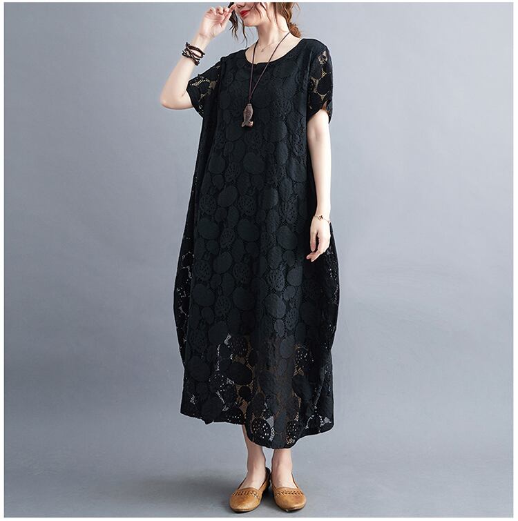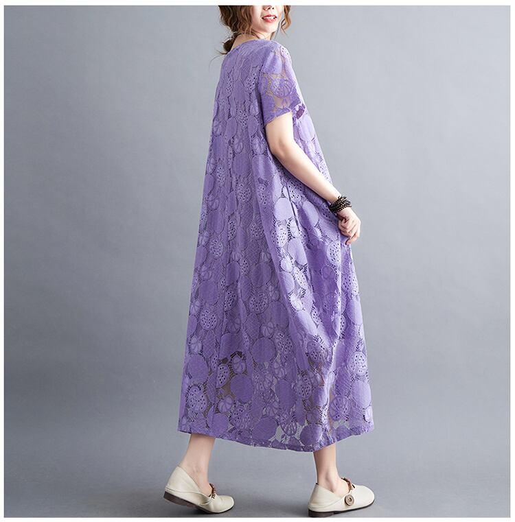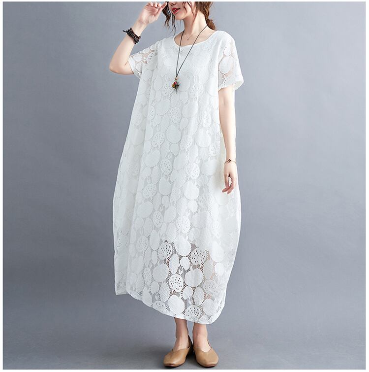 春夏にぴったりな透け感レースのロング丈ワンピースです。