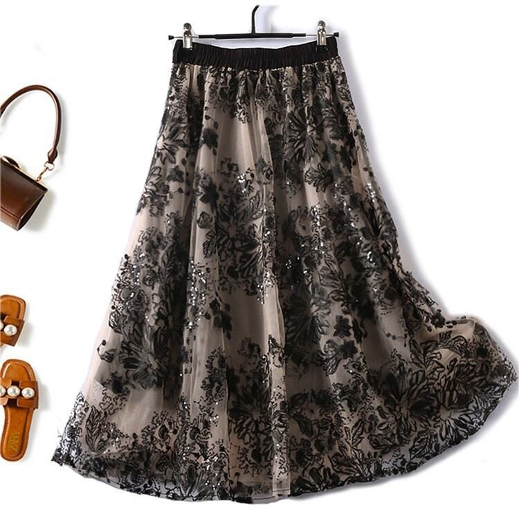 ボトムス スカート 膝丈 ひざ丈 膝下 Aライン ギャザー レース 透け感 シースルー ウエストゴム かわいい 大人可愛い きれいめ 大人 上品 おしゃれ お洒落 レトロ 大人女子 こなれ感 ラフ キュート ガーリー 個性的 モード系 セクシー エレガント モダン 主役級 存在感 抜け感 フリーサイズ ワンサイズ 黒 ブラック 大人カラー モノトーン 柄 花柄 フラワー 春 夏 レディース デート お出かけ パーティー イベント 着回し 韓国 韓国系 オルチャン 楽ちん 体型カバー インスタ映え