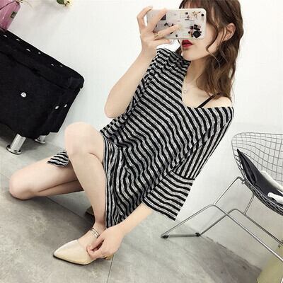 トップス Tシャツ カットソー ストライプ プルオーバー、その名の通りストライプ柄のシンプルなデザインが魅力のトップスです。オーバーサイズのデザインで、ラフな着こなしができる上に、体型カバーもできる優れもの。Vネックラインがデコルテを美しく見せてくれ、女性らしいこなれた印象を与えます。