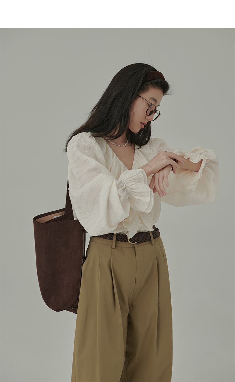 ギャザー、萌え袖など女性らしいディテールをたっぷりと取り入れた一枚です。