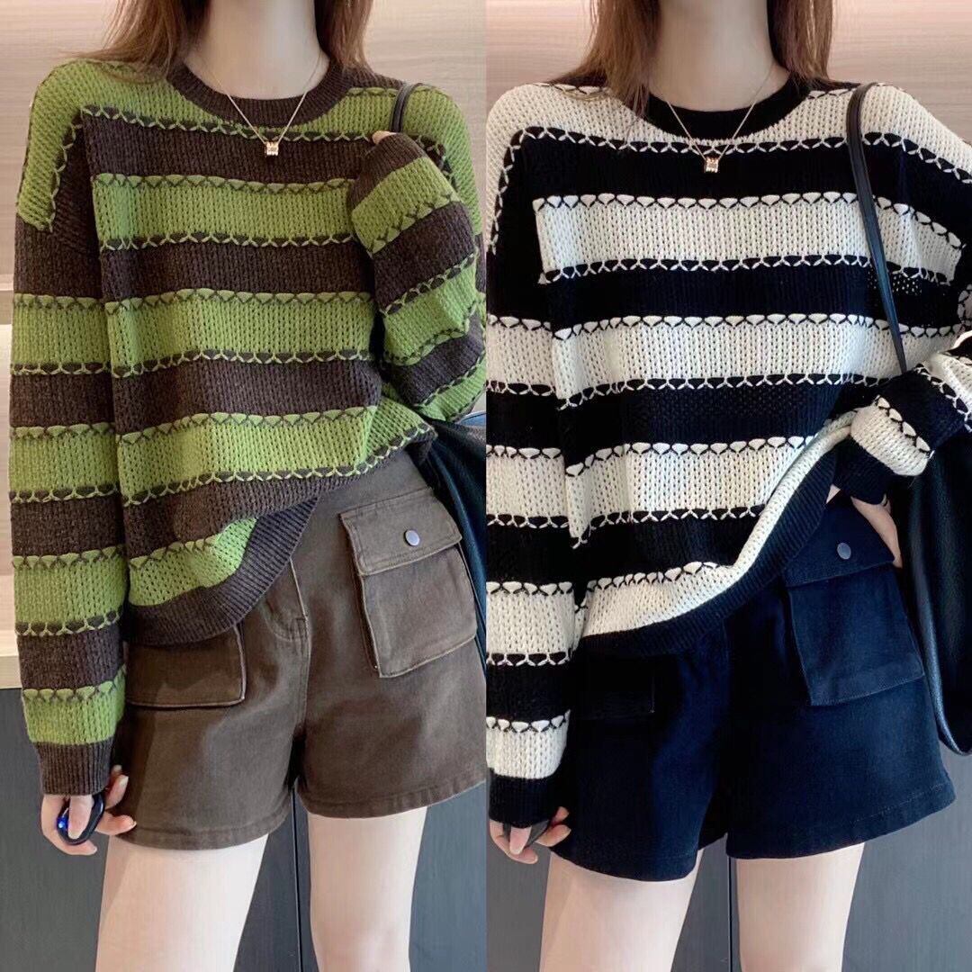 トップス ニットソー セーター ミディアム丈 ミドル丈 袖あり 長袖 ラウンドネック スリム ストレート プルオーバー ニット かわいい シンプル カジュアル おしゃれ お洒落 かっこいい レトロ こなれ感 ラフ マニッシュ ガーリー ルーズ 柄 ボーダー ストライプ 春 秋 冬 10代 20代 レディース 女性用 オフィス ビジネス OL 通勤 学生 通学 お出かけ 休日 ショッピング 着回し 普段使い ファッション コーデ スタイル 楽ちん 体系カバー S M L XL 緑 グリーン 黒 ブラック