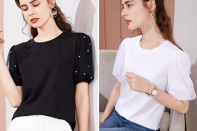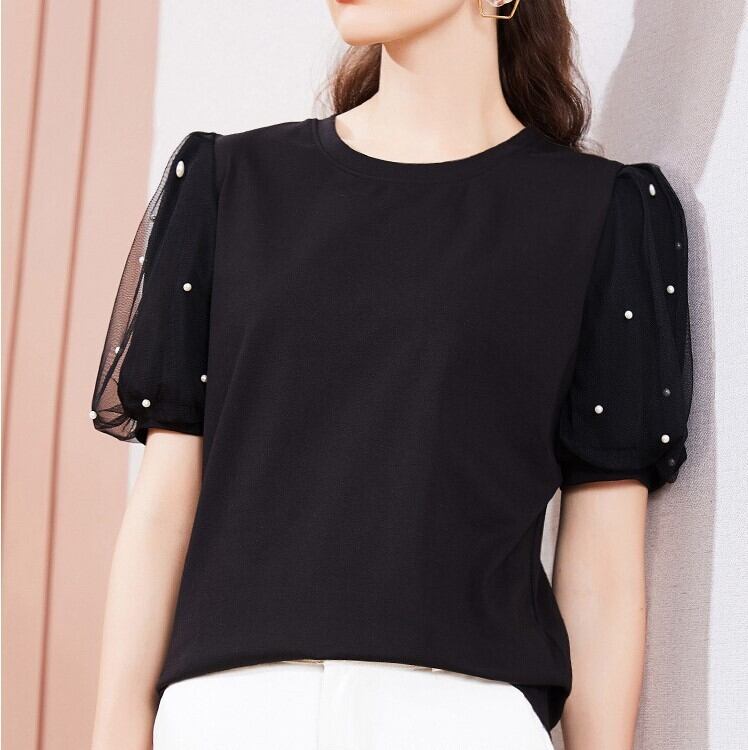 トップス Tシャツ ブラウス Vネック パフスリーブ ニッチデザイン シルク コットン ビーズ 無地 夏 ゆったり M L XL 2XL 3XL 通勤 半袖 綿 レギュラー丈 シャツ 白シャツ 白トップス 袖あり 襟なし シフォン 透け感 かわいい 大人可愛い 大人 上品 おしゃれ お洒落 大人女子 ラブリー キュート ガーリー エレガント モダン 存在感 フォーマル 10代 20代 レディース 女性用 オフィス ビジネス OL デート パーティー ファッション コーデ スタイル モテ トレンド サイズ
