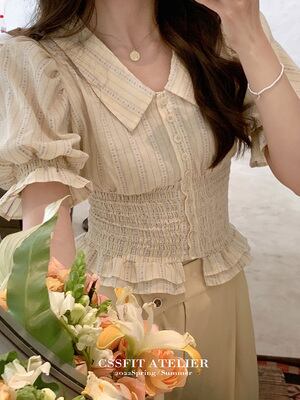 フェミニン ゴージャス ボリュームスリーブ トップス シャツ ブラウス 襟付き 七分袖 袖あり シャツカラー パフスリーブ ボリューム袖 萌袖 Vネック レース ギャザー 前開き 透け感 シースルー ボタン 薄手 ふんわり ゆったり かわいい 大人可愛い きれいめ カジュアル 大人 上品 おしゃれ お洒落 レトロ 大人女子 こなれ感 ラフ ラブリー キュート ガーリー 個性的 抜け感 春 夏 秋 10代 20代 30代 レディース 女性用 OL 学生 お出かけ 休日 楽ちん XS S M L ベージュ