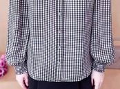 衿先フリル ふんわり袖 トップス ブラウス ミディアム丈 長袖 ボリューム袖 ランタンスリーブ 袖口シャーリング 襟付き 胸上レースライン かわいい 大人可愛い きれいめ シンプル カジュアル 上品 おしゃれ お洒落 大人女子 キュート ガーリー 清楚 ギンガムチェック柄 格子柄 春 秋 冬 レディース 女性用 ママ 女の子 OL 通勤 学生 通学 お出かけ 休日 着回し 普段使い 韓国系 オルチャン ファッション コーデ スタイル S M L XL 2XL 3XL 大きいサイズ 黒 ブラック モノトーン
