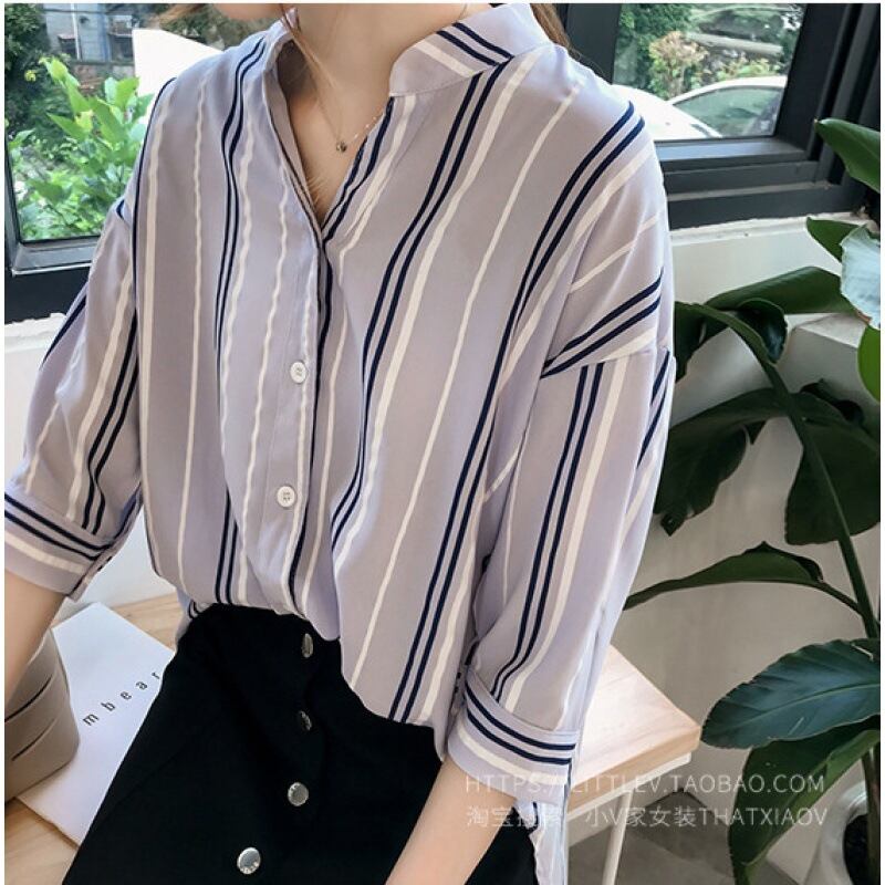 スキッパーデザイン アンバランスヘム トップス ブラウス ミディアム丈 五分袖 七分袖 ドロップショルダー 襟付き Vネック きれいめ シンプル カジュアル 上品 おしゃれ お洒落 大人っぽい こなれ感 ストライプ柄 シマ 縦縞 春 夏 レディース 女性用 ママ 女の子 学生 通学 公園デビュー お出かけ 休日 着回し 重ね着 普段使い 韓国系 オルチャン ファッション コーデ 体系カバー M L XL 2XL 3XL 4XL 大きいサイズ ゆったり ホワイト ブルー グリーン ブリックレッド カラバリ
