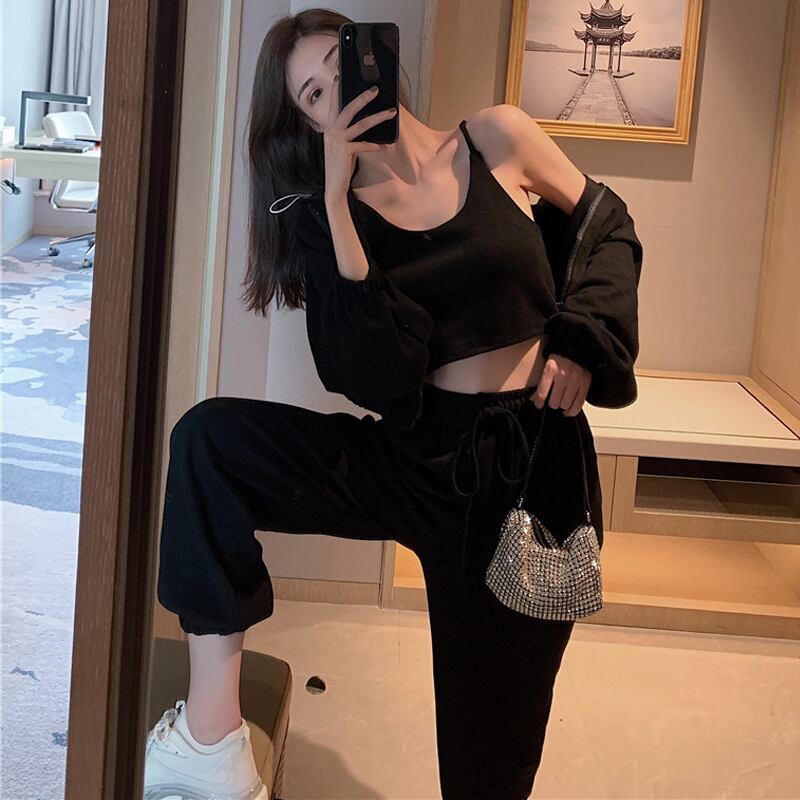 スポーティーでおしゃれな3点セット。ジャケット、パーカー、ランニングズボンの組み合わせで、ランニングやジム、レジャーに最適です。綿素材が快適な着心地を提供し、春の季節にぴったりな軽さを実現。シンプルでスタイリッシュなスポーツスーツを楽しめます。