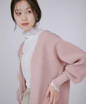 華やかでロマンチックなトップスをお探しの方におすすめな、パールでトリミングされたデザインが印象的なニットカーディガンです。