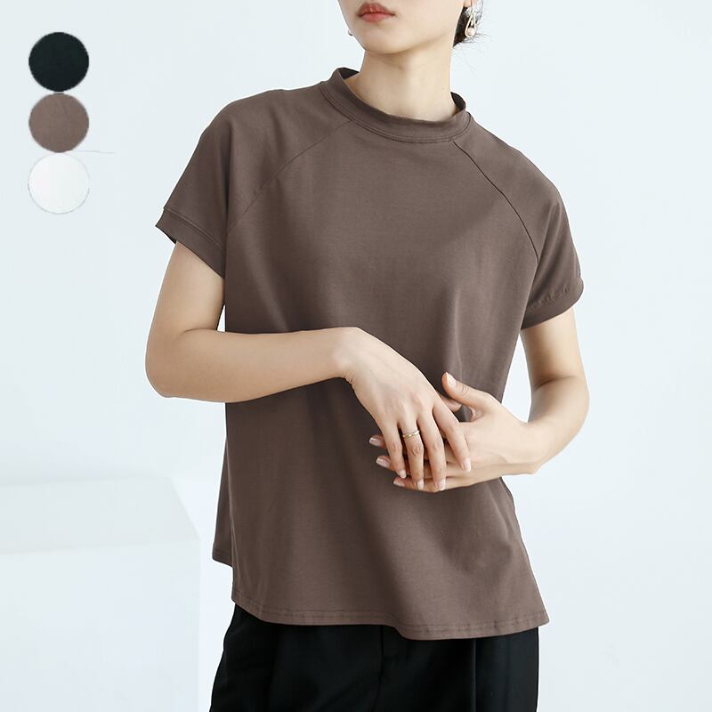大きいサイズ トップス Tシャツ ラグラン袖 通勤 シャツ プルオーバー ゆったり ゆる 半袖 ブラック 黒 ハーフハイカラー 夏 綿 ブラウン M L コーヒー ホワイト 白 ライトカーキ アプリコット ライトブルー 白シャツ 白トップス 袖あり 大人可愛い きれいめ シンプル 大人 上品 おしゃれ お洒落 大人女子 キュート クール エレガント 無地 20代 30代 レディース 女性用 ビジネス OL お出かけ 休日 旅行 着回し ファッション コーデ スタイル 楽ちん モテ 体系カバー 色展開