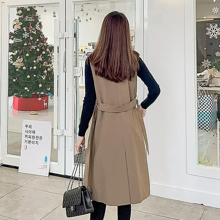 アウター 上着 コート トレンチコート 膝丈 ひざ丈 ミディアム丈 ミディ丈 Vネック 襟付き 袖なし ノースリーブ ウエストマーク ウエストリボン ボタン 前開き ポケット キュート かわいい 大人可愛い 大人っぽい 大人女子 フェミニン きれいめ エレガント 上品 清潔感 シンプル カジュアル 抜け感 おしゃれ お洒落 個性的 無地 春 秋 レディース 女性用 普段使い デイリー 重ね着 S M L XL 2XL 3XL 4XL ビッグサイズ プラスサイズ 2色展開 黒 ブラック カーキ