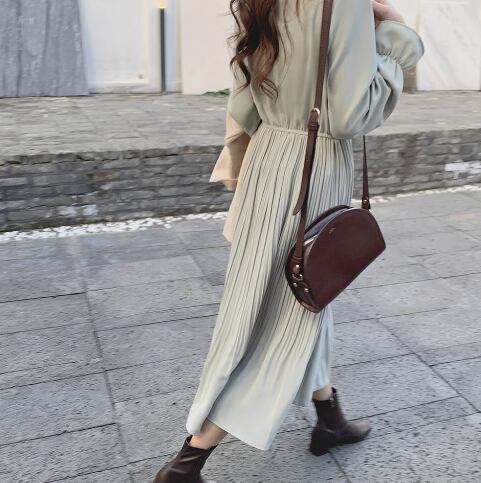ワンピース フェミニンワンピース ロング丈 長袖 スタンドカラー デザイン ギャザー 美ライン ニュアンス プリーツ 伸縮性 軽やか カラバリ ロマンチック かわいい 大人可愛い きれいめ シンプル カジュアル 大人 上品 おしゃれ お洒落 大人可愛い 大人女子 こなれ感 ラブリー キュート ガーリー 個性的 エレガント モダン 主役級 存在感 抜け感 ベーシック ヨーロッパカジュアル ブリティッシュ スタンダード 洗練 シーズンレス エイジレス レディース お出かけ 旅行 着回し 普段使い 重ね着
