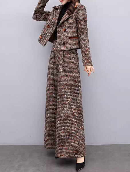 セットアップ ジャケット ワイドパンツ 長袖 襟付き デザイン ボタン トリム ダブルブレスト タック 美ライン ニュアンス ベロア ツイード 2点セット ツーピース 2点セット スタイルアップ かわいい 大人可愛い きれいめ シンプル カジュアル 大人 上品 おしゃれ お洒落 大人可愛い 大人女子 こなれ感 ラブリー キュート ガーリー 個性的 エレガント モダン 主役級 存在感 抜け感 ベーシック ヨーロッパカジュアル ブリティッシュ スタンダード 洗練 千鳥格子 グレンチェック シーズンレス