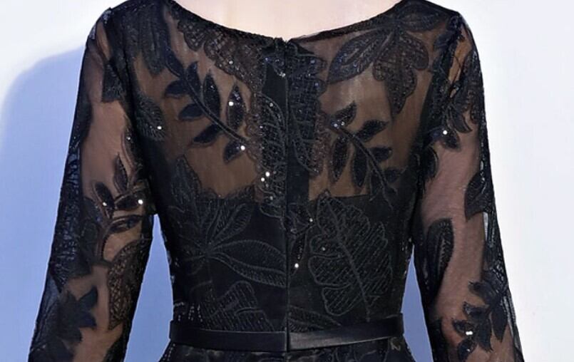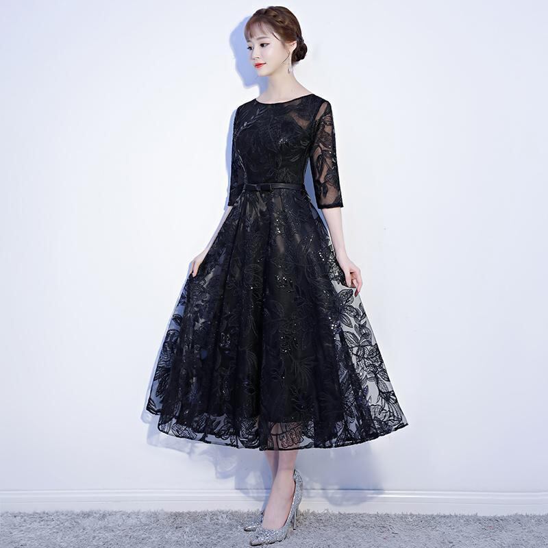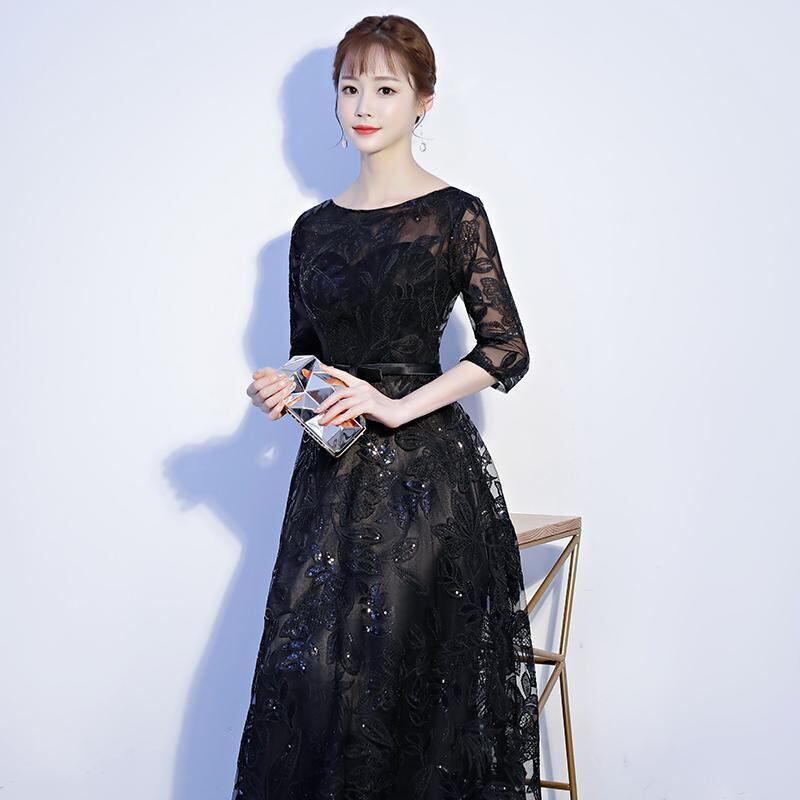 スパンコール装飾 リーフ柄刺繍 シアー切替え ドレス ワンピース 膝下丈 ミモレ丈 袖あり 五分袖 襟なし ボートネック ウエストリボン ウエストマーク 切り替えデザイン バックファスナー 透け感 シースルー 異素材MIX きれいめ シンプル 上品 大人っぽ おしゃれ お洒落 エレガント シック 春 夏 秋 レディース ママ 女の子 パーティー イベント 演奏会 謝恩会 結婚式 二次会 体系カバー 脚長 XL XXL XXXL 4XL 5XL 大きいサイズ ぽっちゃり マシュマロ女子 ブラック モノトーン