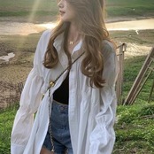 このトップスは、ドロップショルダーで、リラックス感がありながらも女性らしいデザインです。襟付きで大人っぽさもあり、ティアードパフスリーブがキュートな印象を与えます。オーバーサイズでビッグシルエットなので、着心地も抜群です。洗練された雰囲気があり、上品でおしゃれな装いを楽しめます。