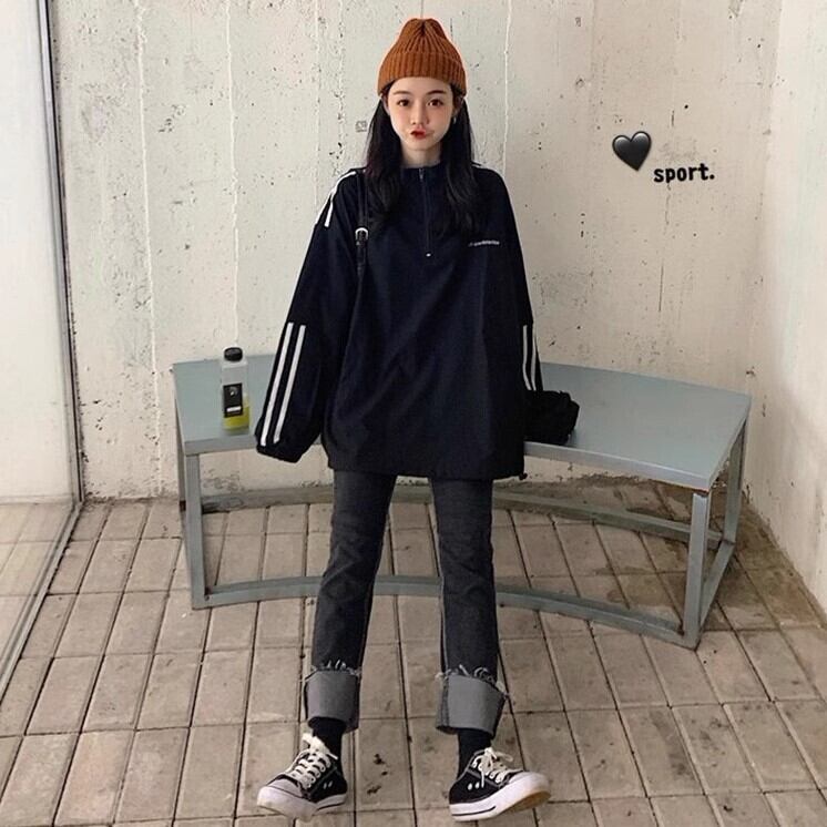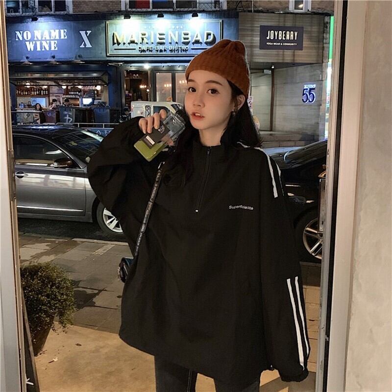 オーバーサイズ 袖ダブルライン ハーフジップアップ トップス プルオーバー ミディアム丈 チュニック丈 長袖 萌袖 ドロップショルダー 襟付き スタンドカラー 首元ファスナー 胸ロゴ入り シンプル カジュアル 上品 おしゃれ お洒落 かっこいい こなれ感 ルーズ ボーイッシュ メンズライク スポーティー 無地 春 秋 レディース ママ 女の子 学生 通学 お出かけ 運動 エクササイズ 休日 普段使い 重ね着 着回し 体系カバー S M L XL 2XL 大きいサイズ ゆったり 黒 ブラック モノトーン