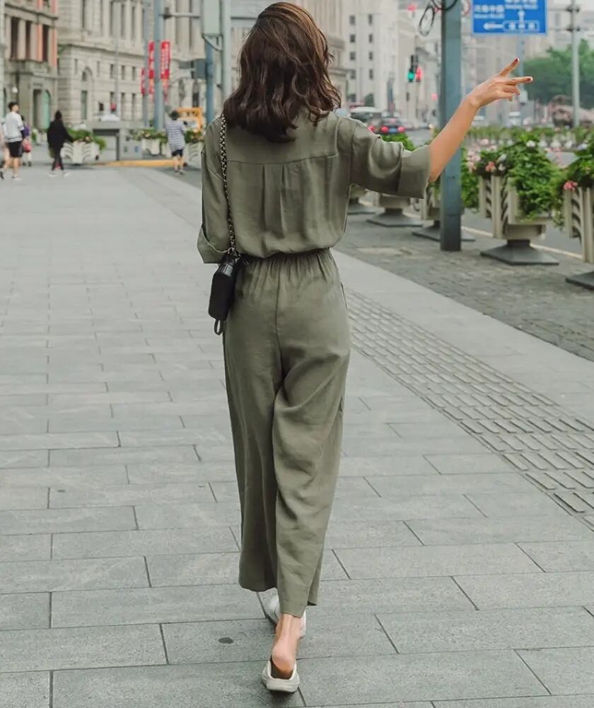 ワンピース オールインワン ジャンプスーツ クロップド丈 アンクル丈 Vネック 襟付き 5分袖 五分袖 ドロップショルダー ハイウエスト ウエストマーク ウエストリボン ボタン ポケット キュート かわいい 大人可愛い 大人女子 フェミニン エレガント 上品 清潔感 シンプル かっこいい クール マニッシュ カジュアル こなれ感 ラフ 抜け感 おしゃれ お洒落 無地 春 夏 レディース 女性用 お出かけ デート 普段使い 楽ちん 体系カバー スタイルアップ 脚長 美脚 モテ 動きやすい 緑 グリーン