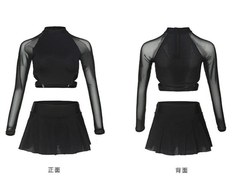 袖シースルー切替え サイドカットアウト フレアスカート 水着 スイムウェア タンキニ セパレート ノンワイヤー パッド付き 長袖 切り替えデザイン 透け感 伸縮性 紫外線対策 メッシュ素材 上下セット セクシー シンプル カジュアル 大人っぽい おしゃれ お洒落 個性的 クール スタイリッシュ かっこいい スポーティー くびれ見せ 無地 レディース ママ 女の子 春 夏 海 ビーチ プール リゾート スパ 体系カバー 脚長 スタイルアップ 韓国系 オルチャン M L XL 黒 ブラック モノトーン